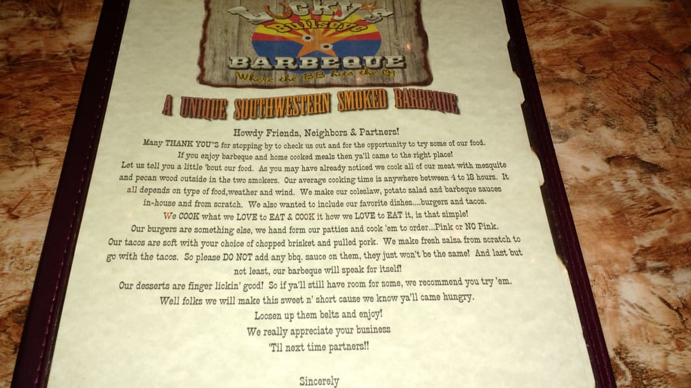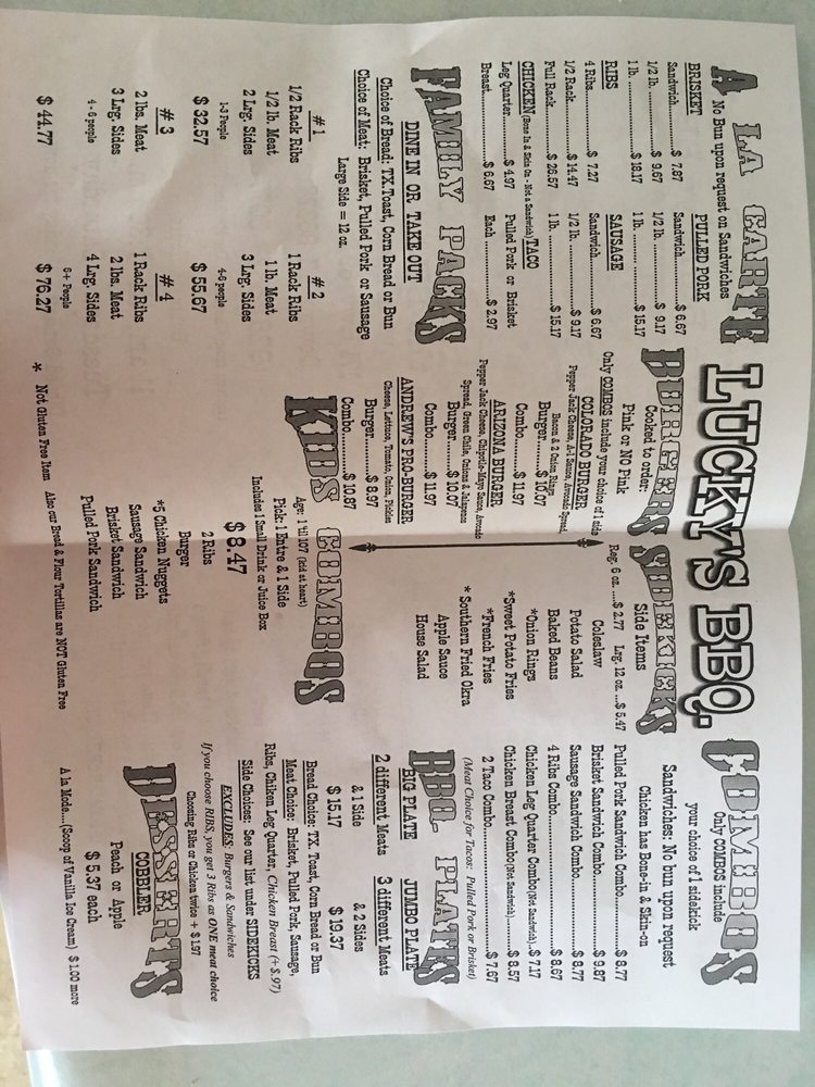 Lucky's BBQ & Burgers Menu